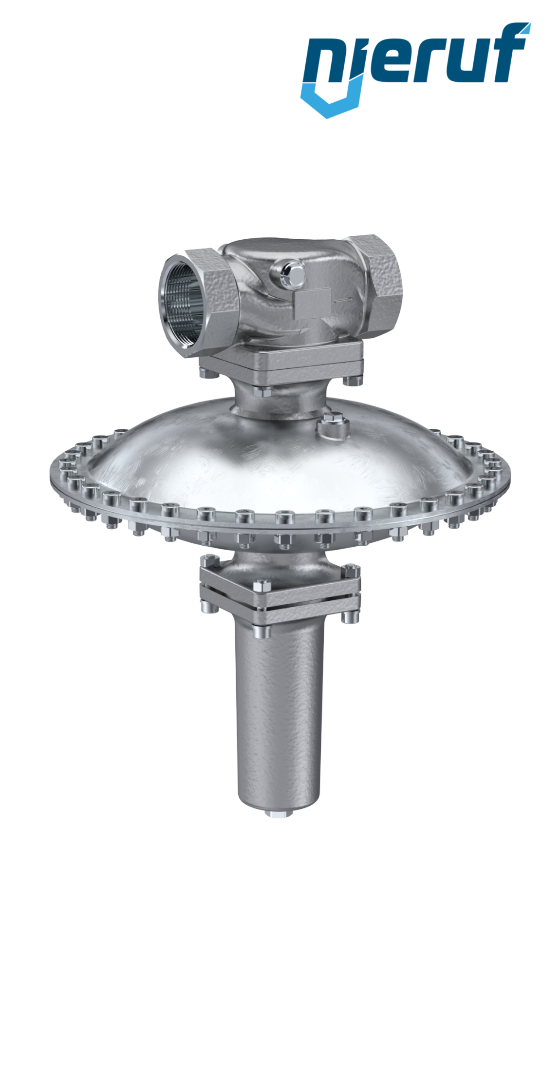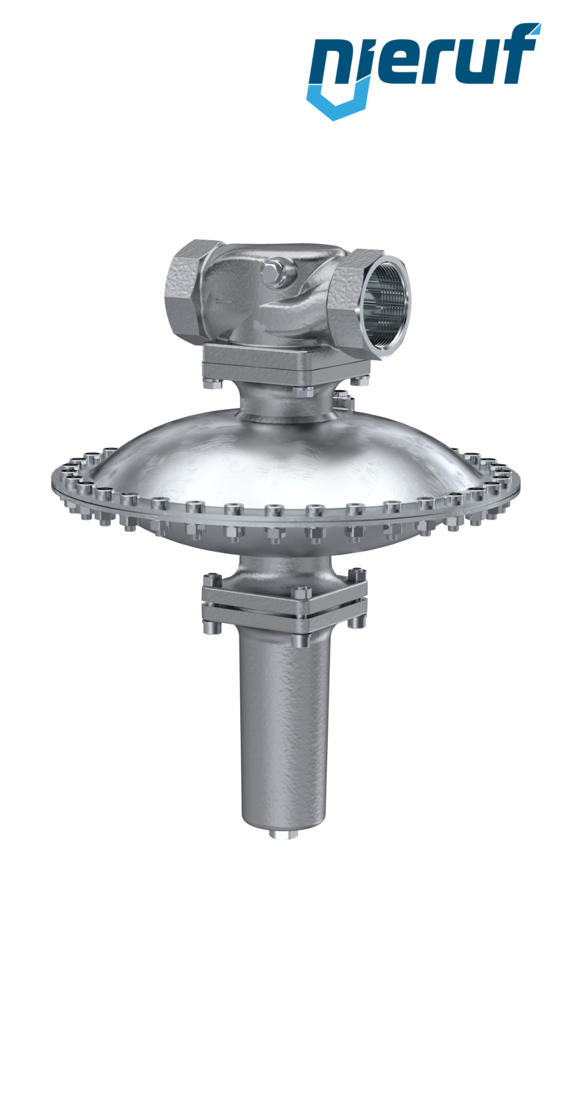Millibar-Druckminderer DN50 aus Edelstahl mit Innengewinde für flüssige & neutrale gasförmige Medien und FKM Dichtung, Einstelldruck 7 - 100 mbar