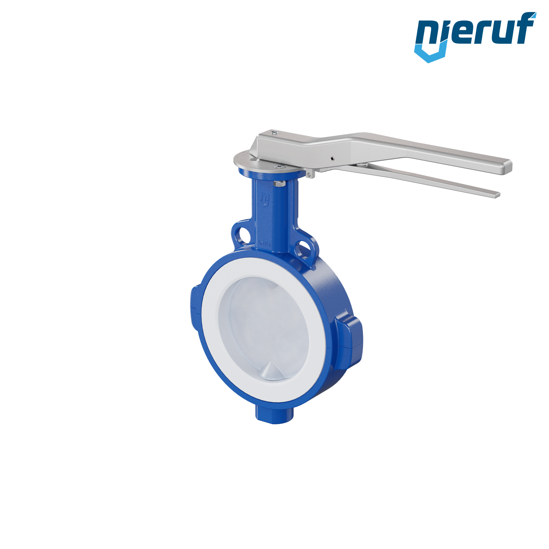 PFA-Absperrklappe DN150 PN10-PN16 mit Zentrieraugen mit Rasthebel Dichtung aus PTFE und Silikon Einlage für aggressive Medien