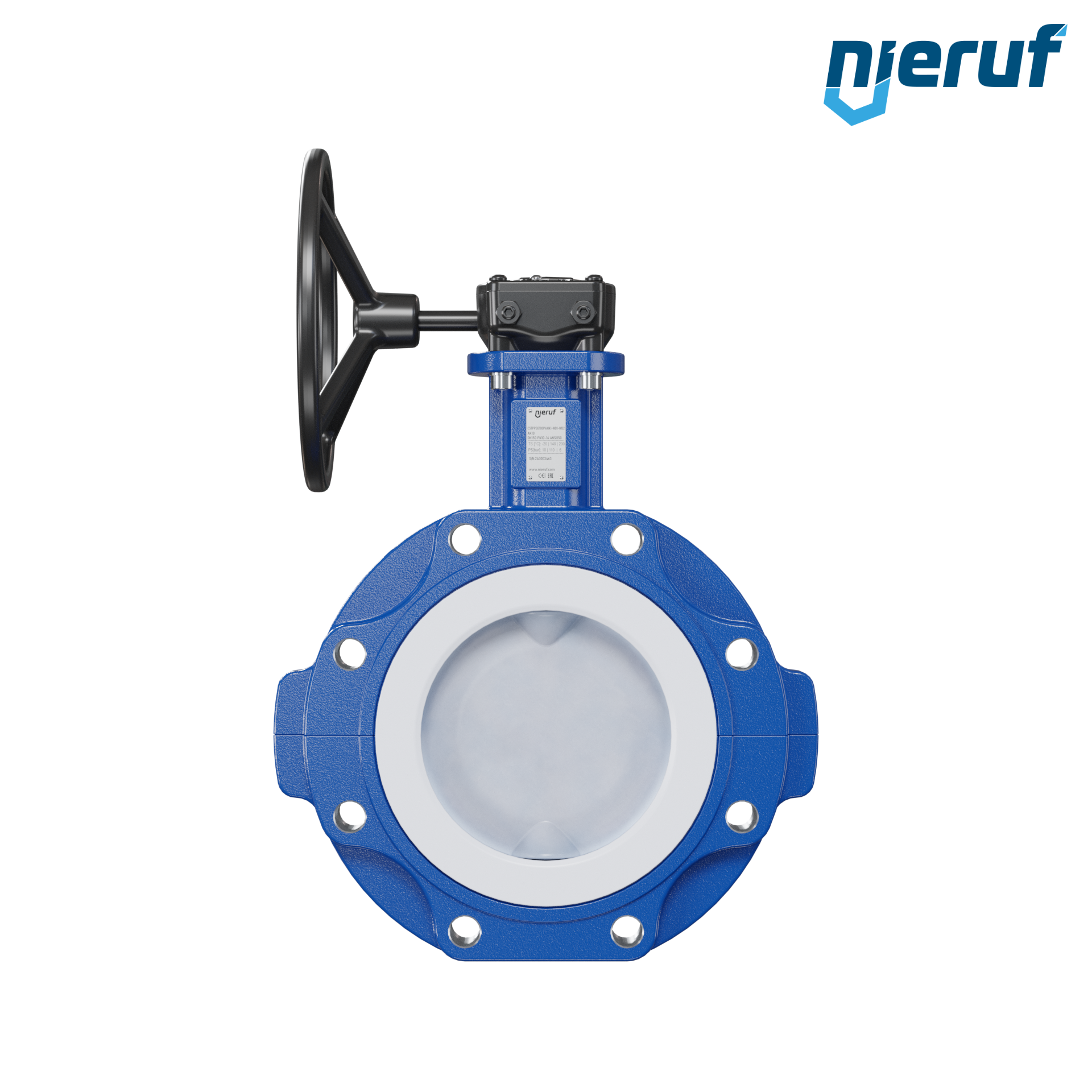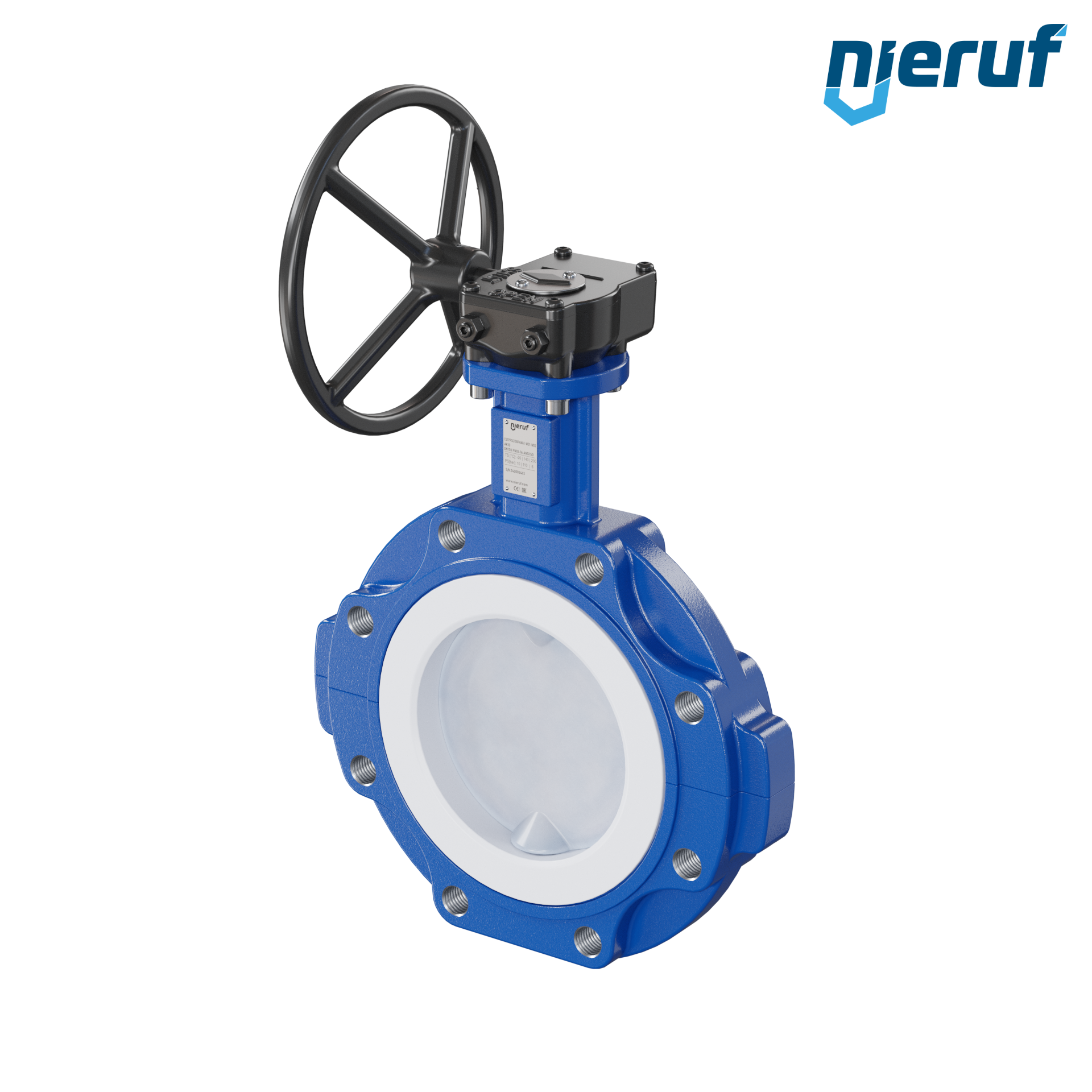 PFA-Absperrklappe DN150 PN10-PN16 mit Gewindeaugen mit Handradgetriebe Dichtung aus PTFE und FKM Einlage für aggressive Medien