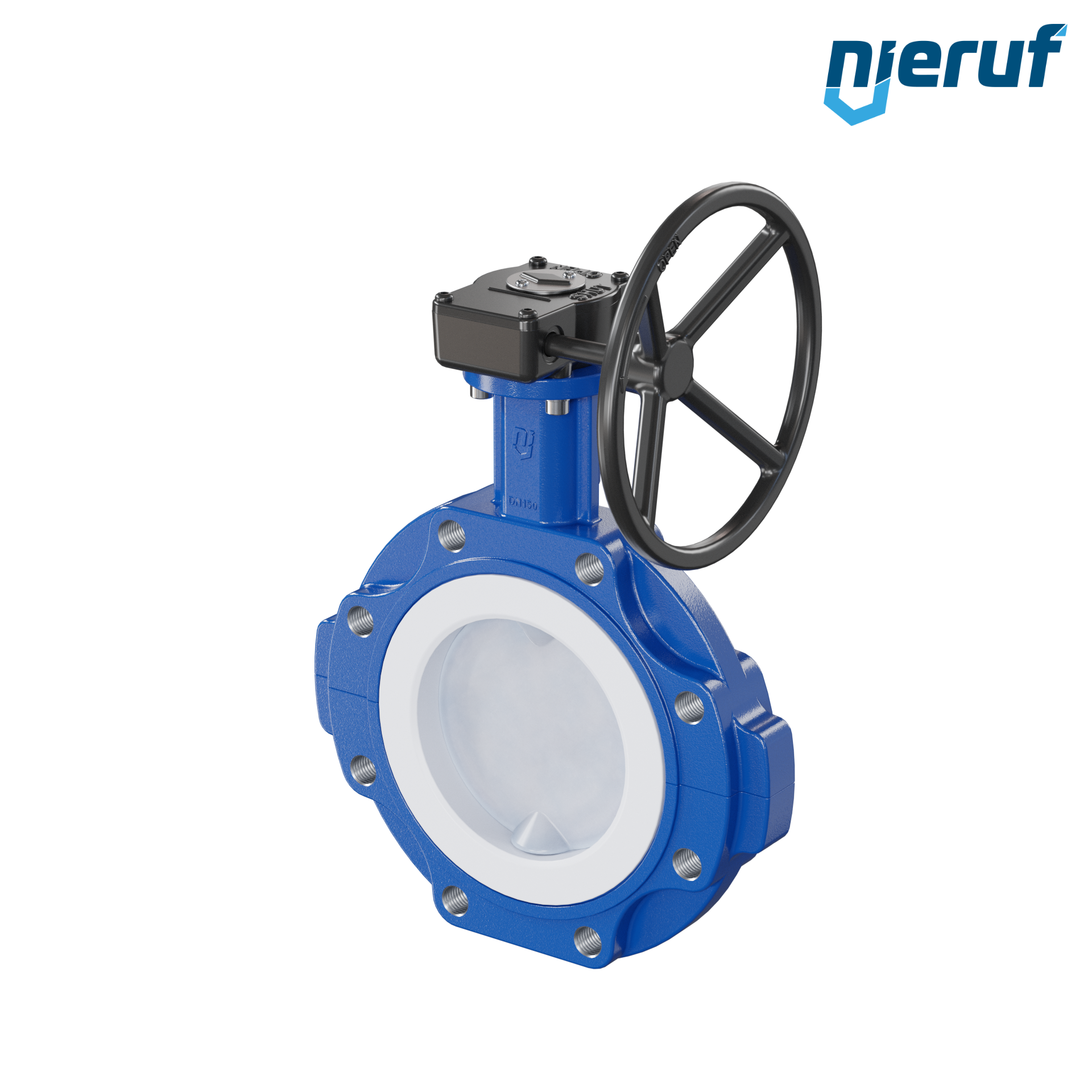 PFA-Absperrklappe PTFE AK10 DN150 PN10-PN16 Handradgetriebe FKM Einlage