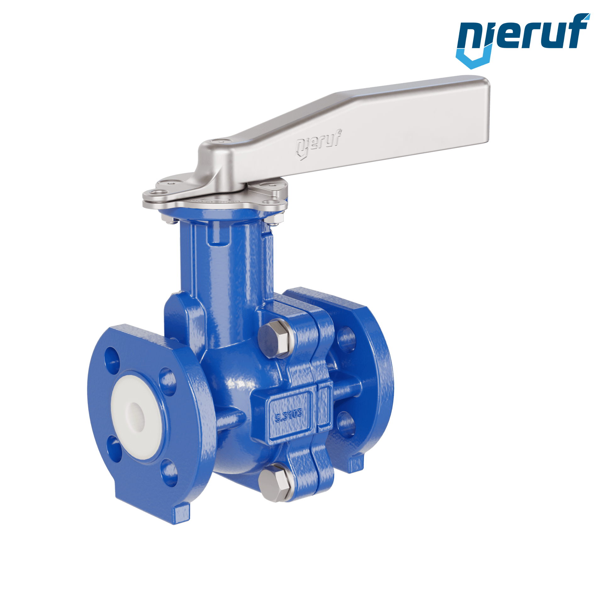 PFA-Flanschkugelhahn FK13 DN15 - 1/2" Zoll PN10/16 aus Sphäroguss mit Hebelgriff