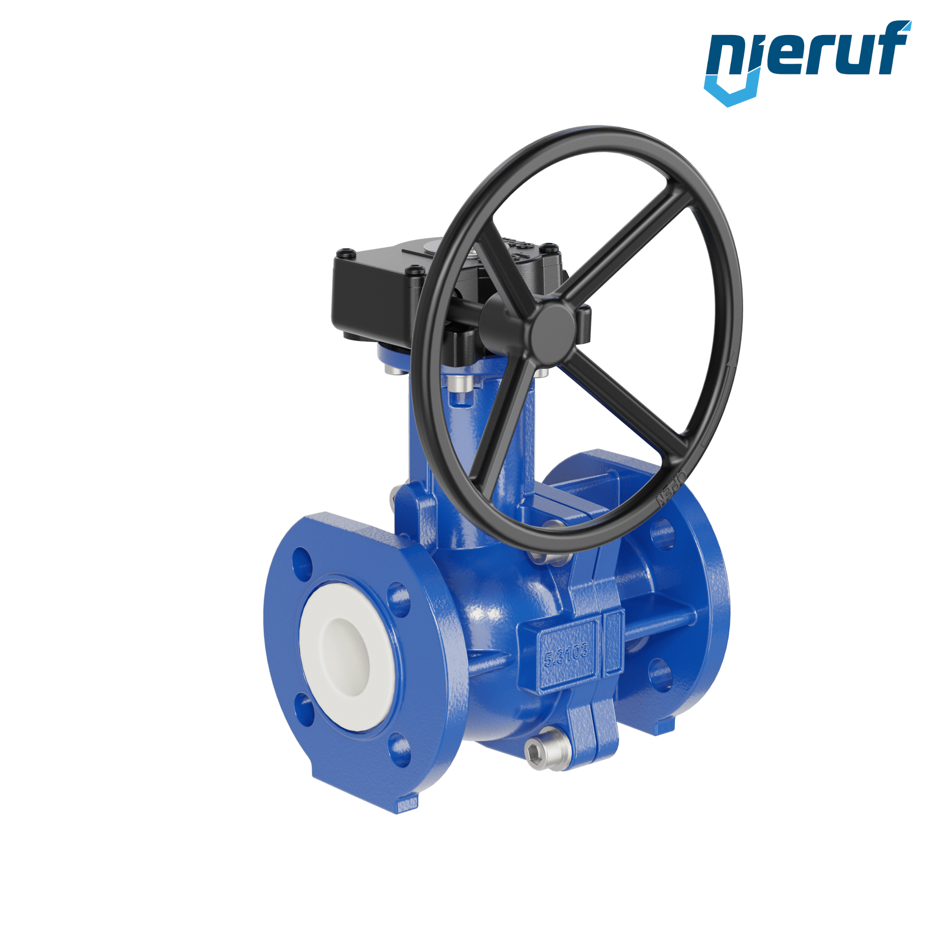 PFA-Flanschkugelhahn FK13 DN40 - 1 1/2" Zoll PN10/16 aus Sphäroguss mit Handgetriebe