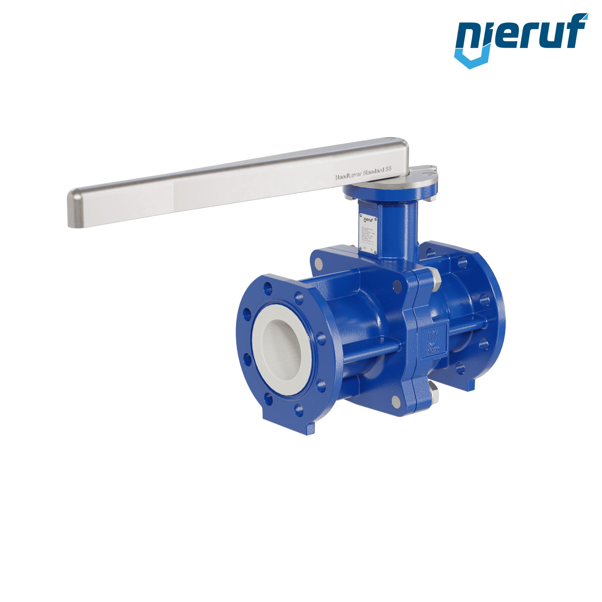 PFA-Flanschkugelhahn FK13 DN80 - 3" Zoll PN10/16 aus Sphäroguss mit Hebelgriff