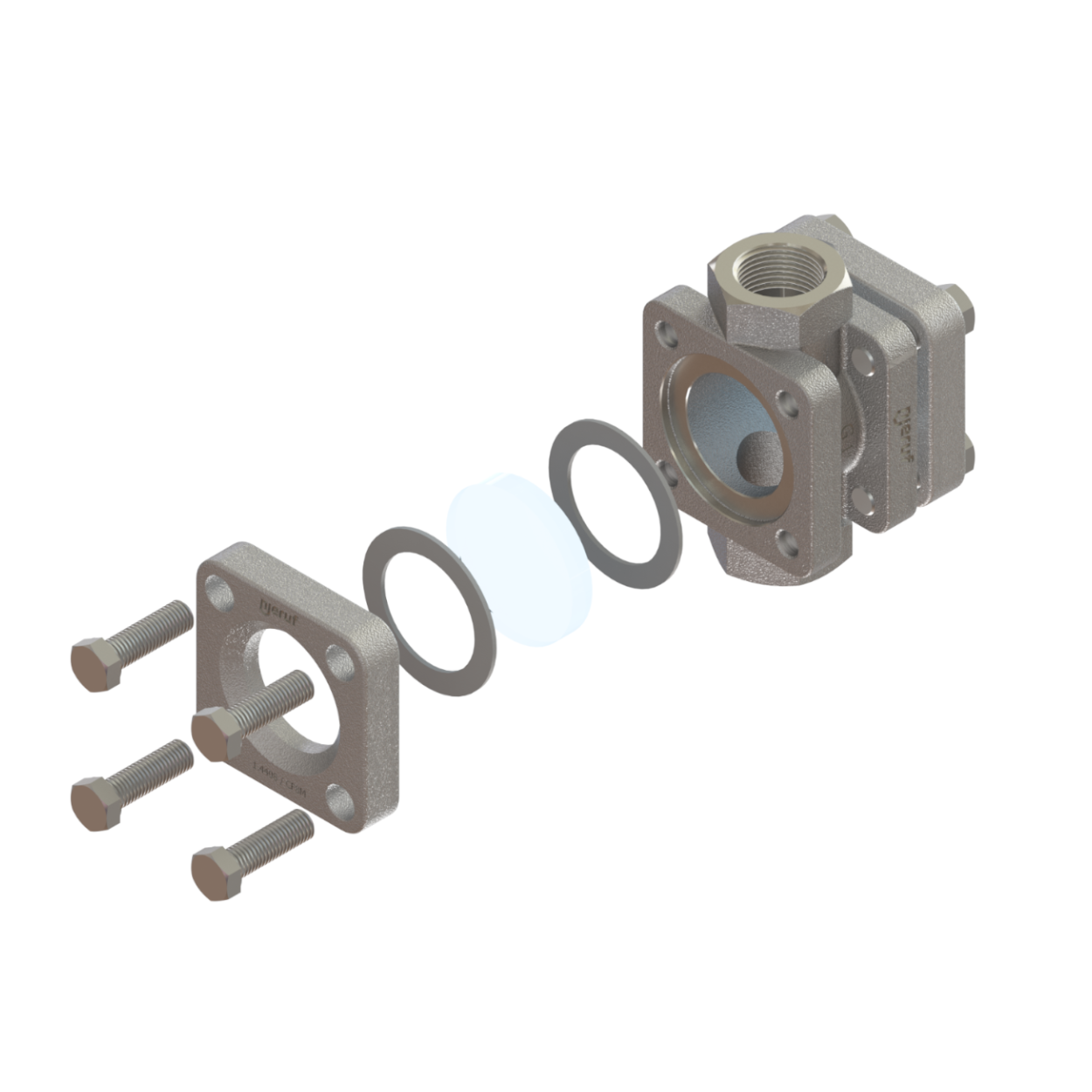 Durchfluss-Schauglas 1" Version mit Klappe Typ GS03 Borosilikatglas Graphit max 16 bar
