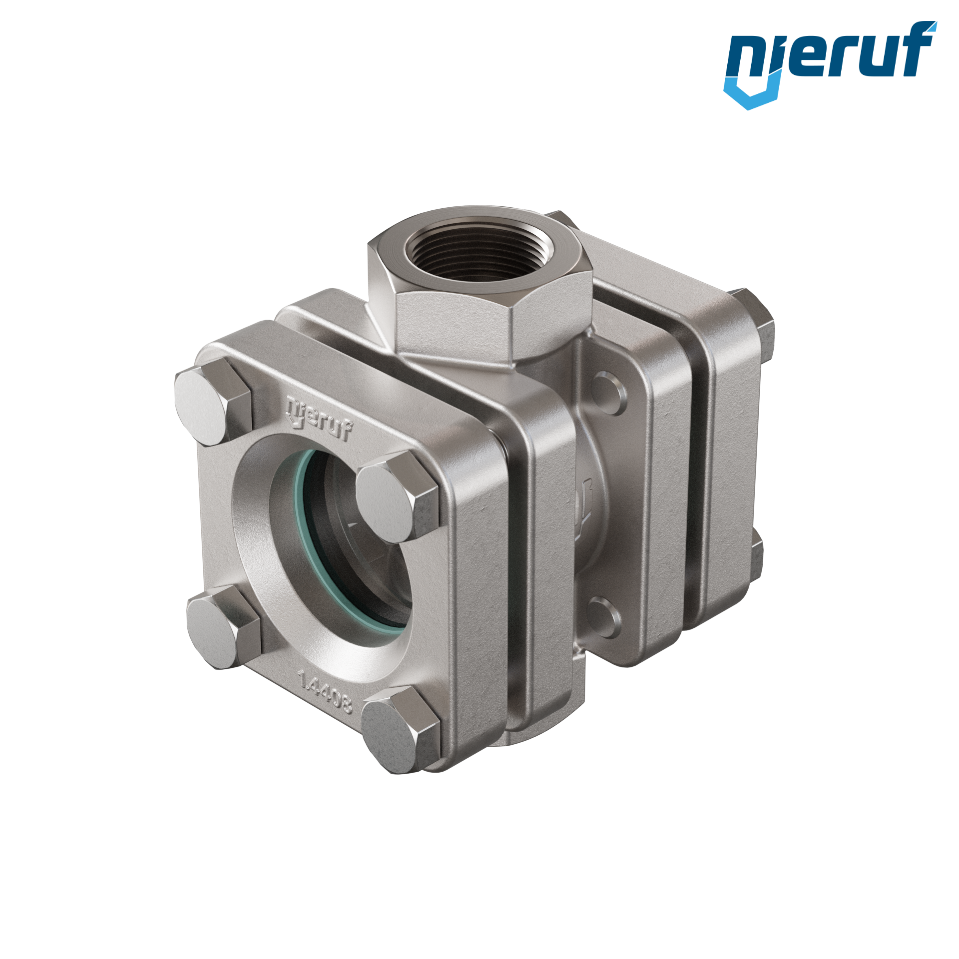 Durchfluss-Schauglas DN25 - 1" Zoll Edelstahl Typ GS03 Natron-Kalk-Glas Graphit max 16 bar Version mit Klappe