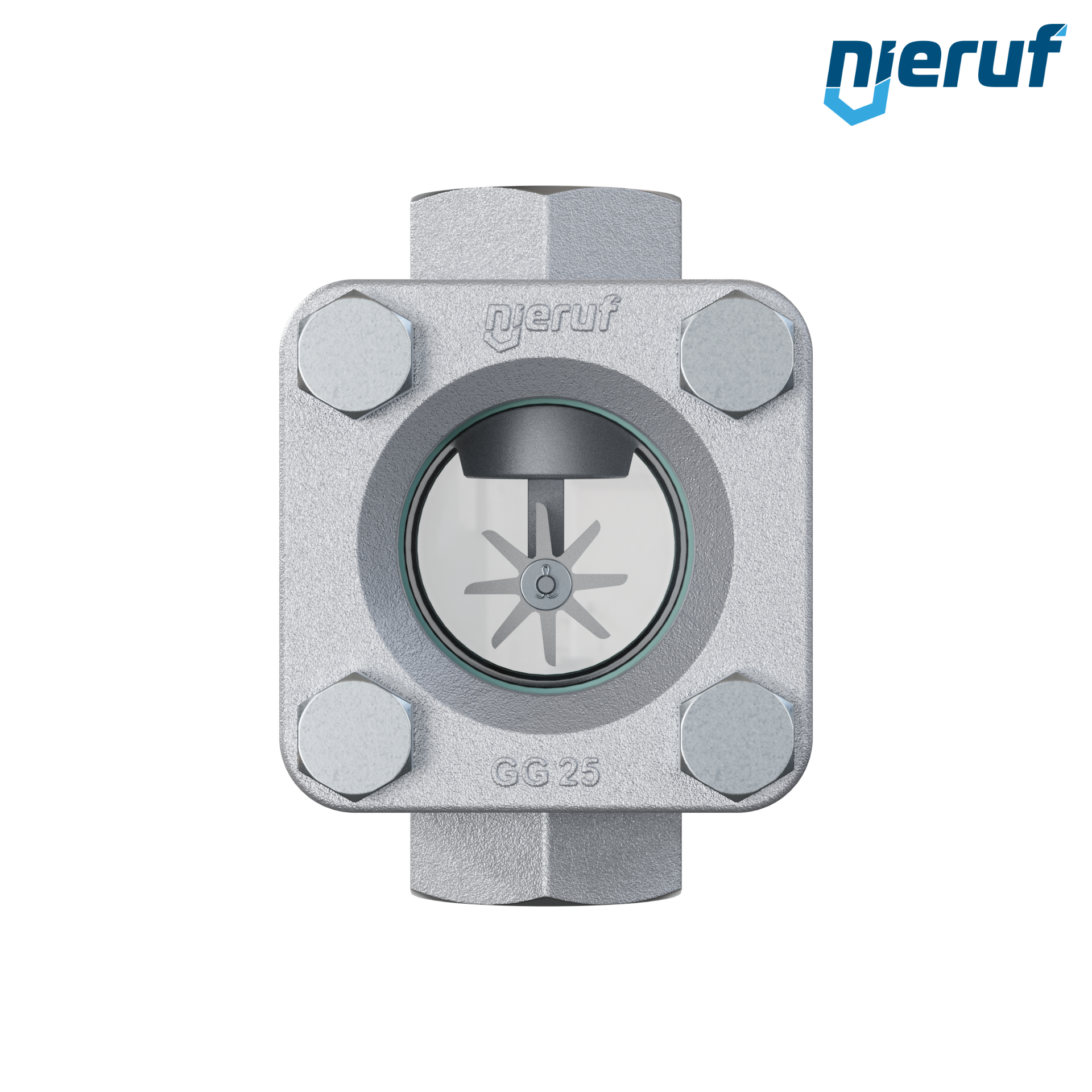 Gewinde Schauglas G 1" Zoll Grauguss GG25 Natron-Kalk-Glas Version mit PTFE-Rotor