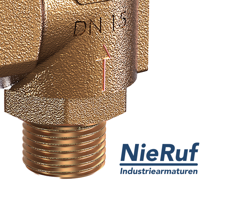 Sicherheitsventil Aussengewinde 1/2" AG x 1" IG Rotguss EPDM Typ SV03 für neutrale flüssige Medien mit Drehanlüftung ohne Faltenbalg