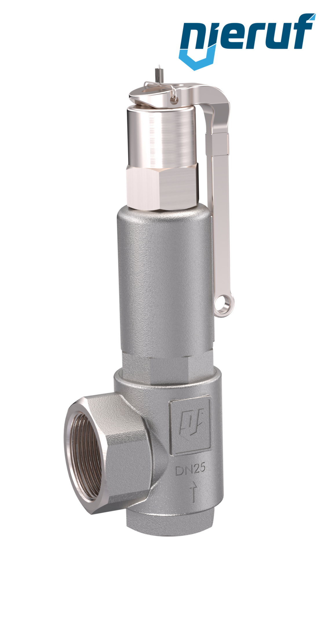 Sicherheitsventil 1/2" x 1" IG SV10 für gasförmige Medien aus Edelstahl Dichtung FKM Einstelldruck 0,5 - 25,0 bar- höhere Drücke in PTFE Ausführung möglich mit Hebel