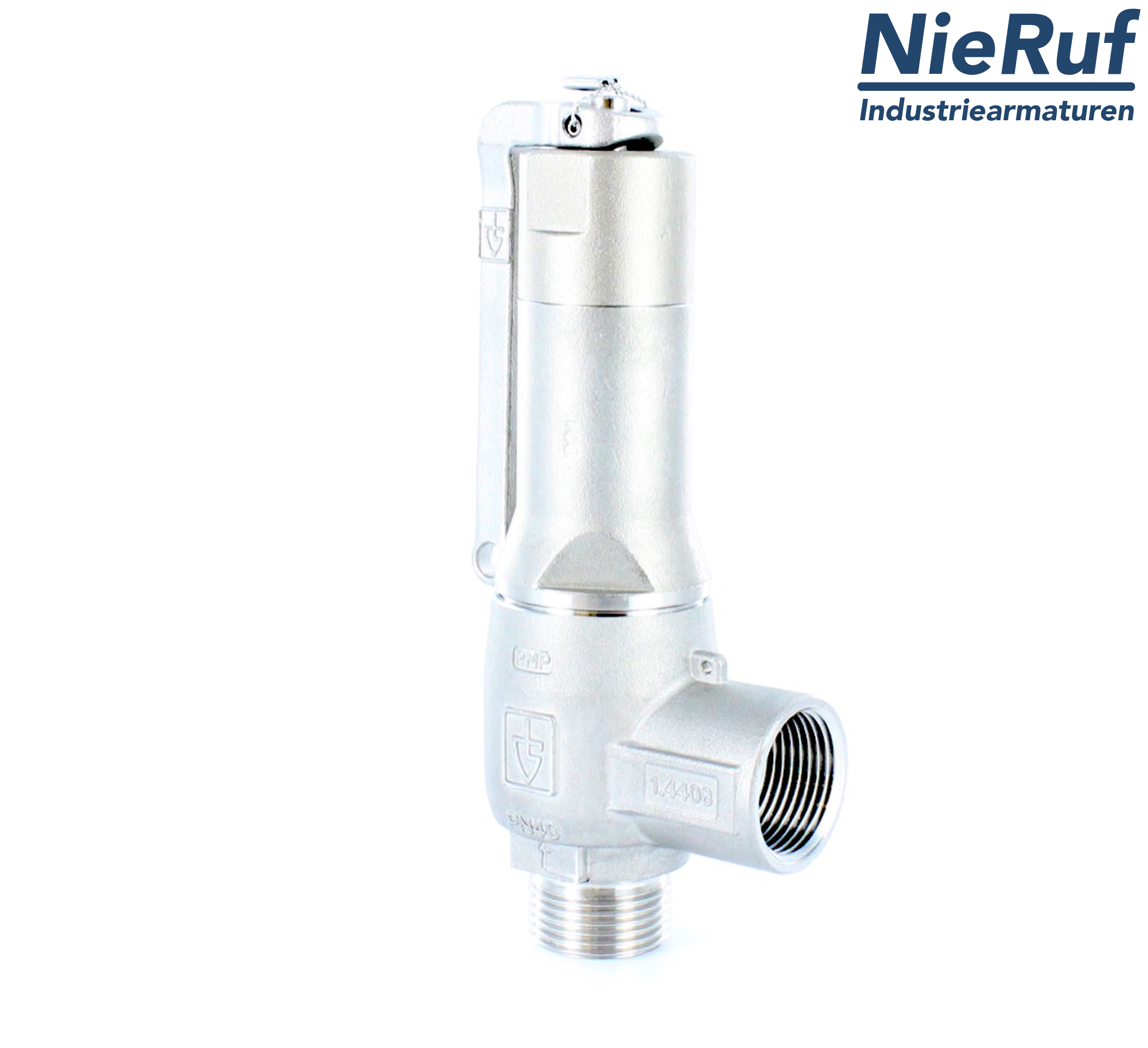 Sicherheitsventil 1/2" AG x 1/2" IG SV13 für flüssige und gasförmige Medien aus Edelstahl Dichtung NBR Druck 0,2 - 25,0 bar mit Hebel