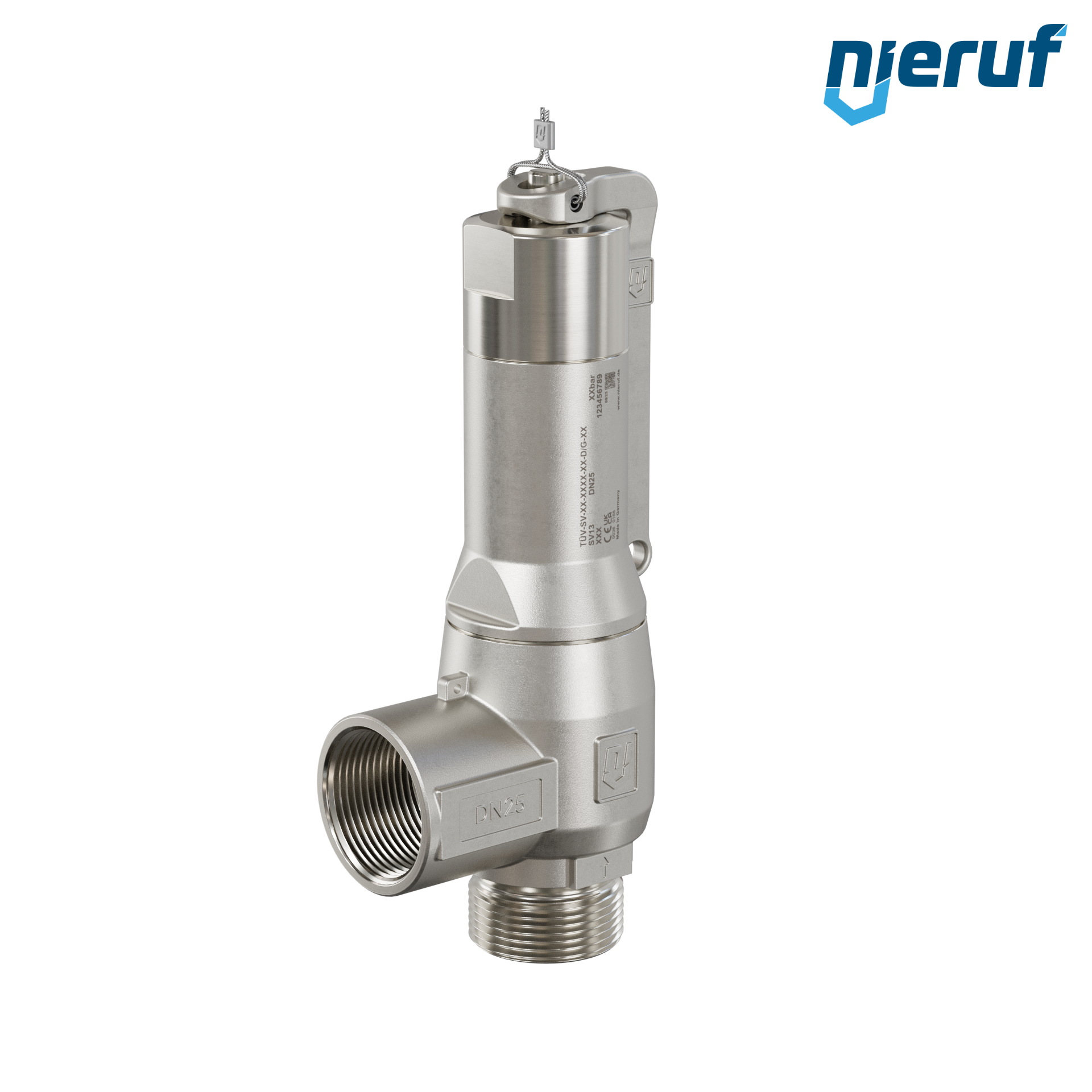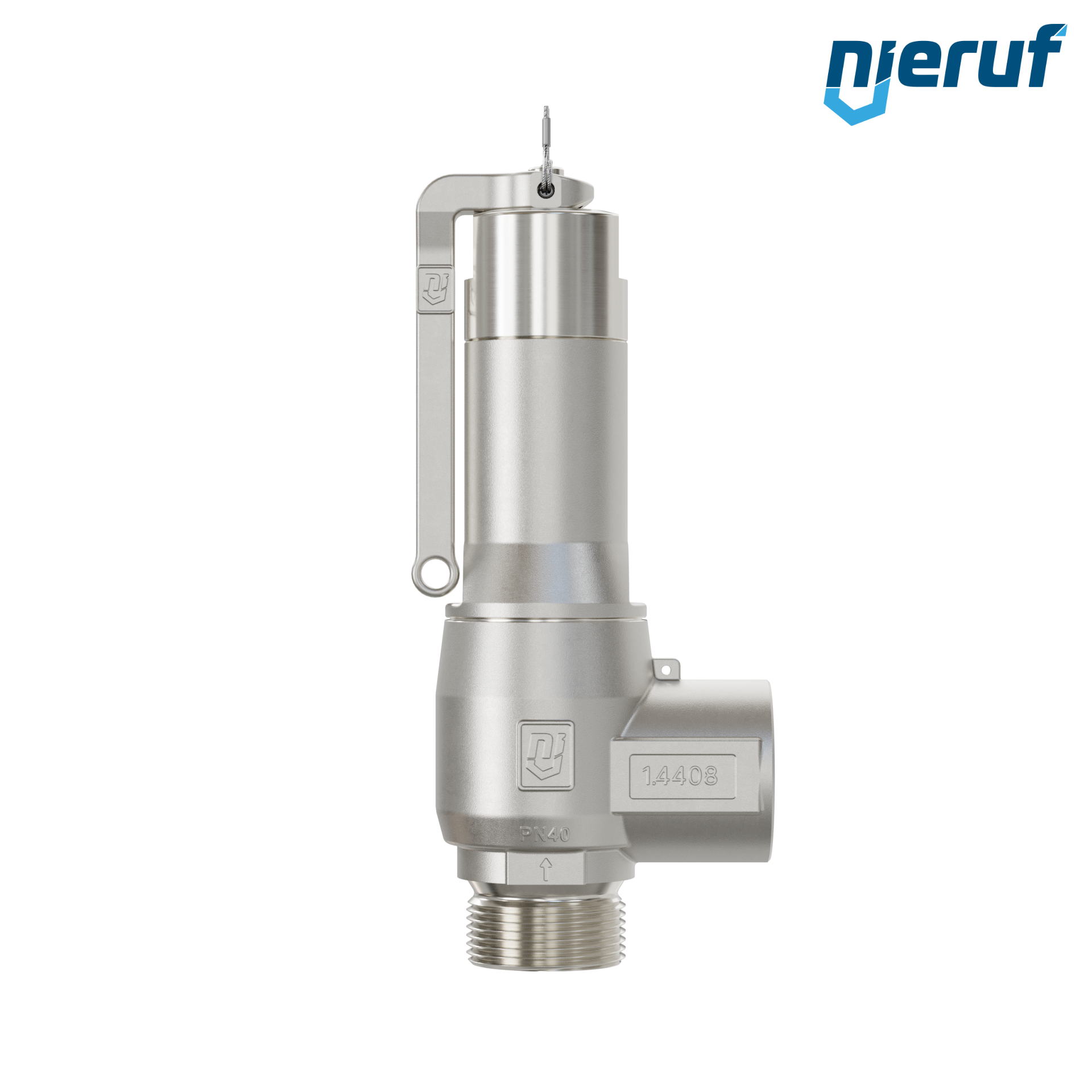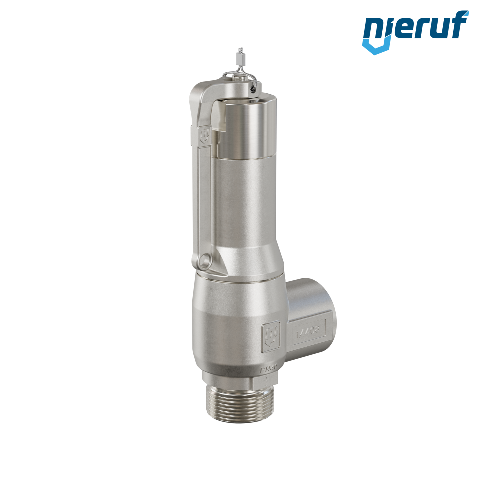 Sicherheitsventil 1" AG x 1" IG SV13 für flüssige und gasförmige Medien aus Edelstahl Dichtung NBR Druck 0,2 - 25,0 bar mit Hebel