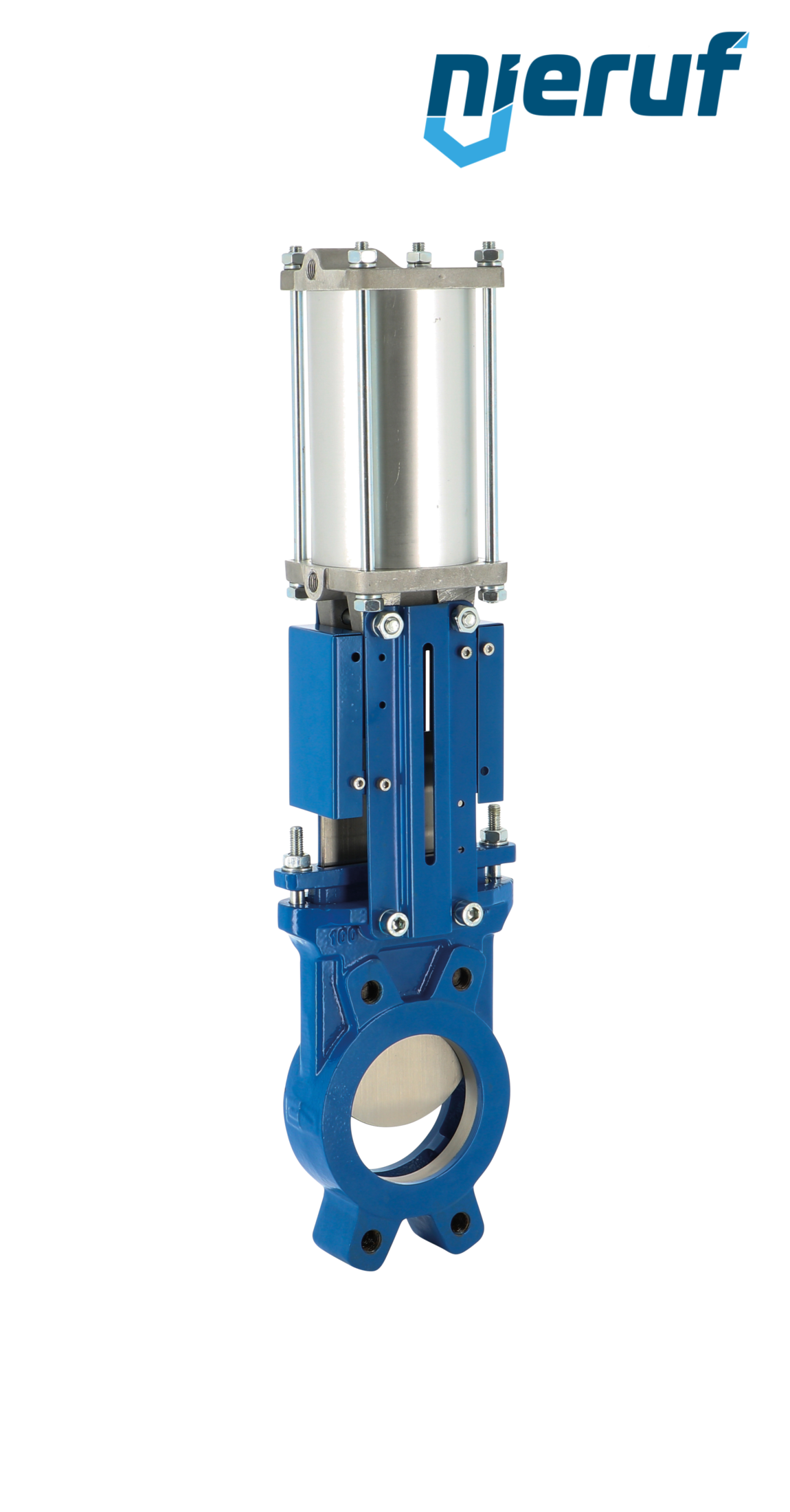 Stoffschieber pneumatischer Antrieb doppeltwirkend DN 100 DIN EN 1092-1 PN10 EPDM aus Gusseisen EN GJL-250 einseitig dichtend für flüssige & gasförmige Medien