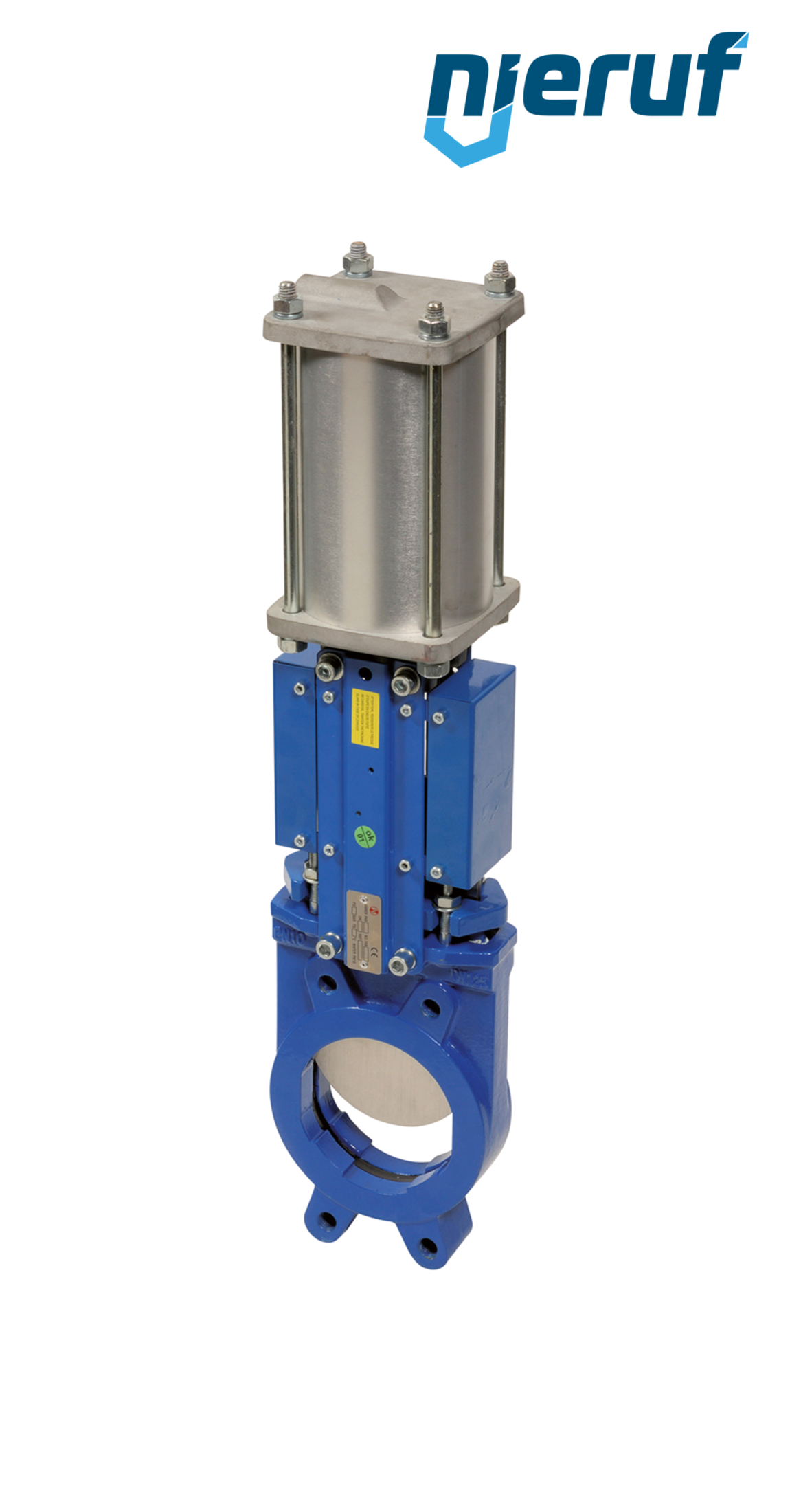 Stoffschieber pneumatischer Antrieb doppeltwirkend DN 125 DIN EN 1092-2 PN10 EPDM aus Gusseisen EN GJL-250 beidseitig dichtend für flüssige & gasförmige Medien