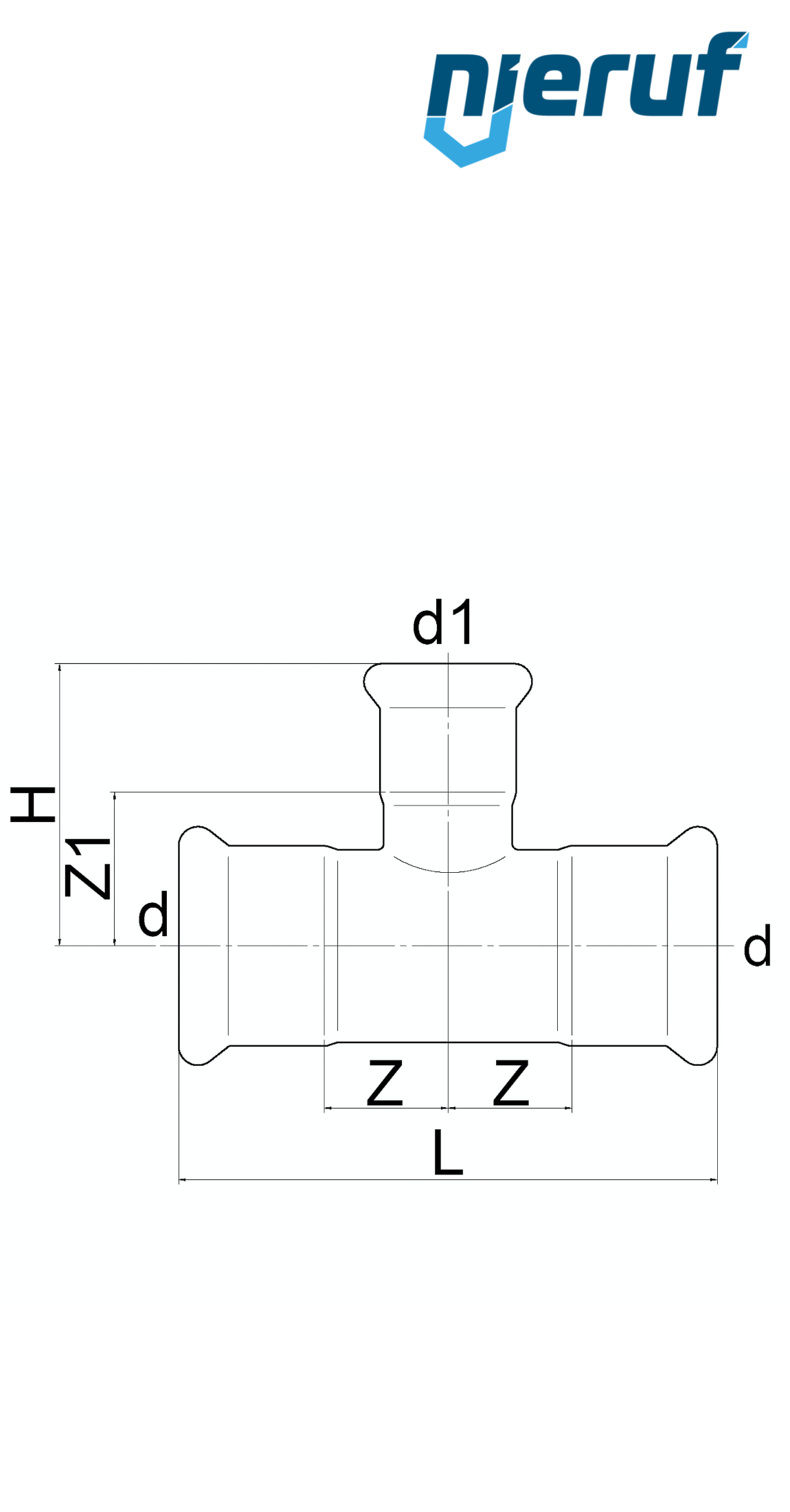 T-Stück PF01-01 mit Pressanschluss I x I DN25 - 28,0 mm, Aussengewinde 1" Zoll aus Edelstahl für flüssige & gasförmige Medien