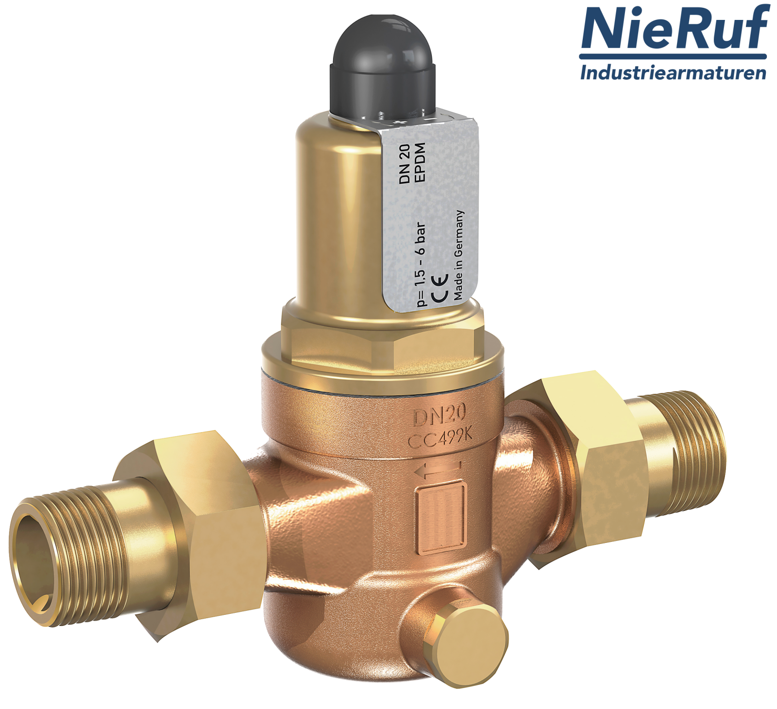 Durchgangs-Überströmventil 1 1/2" Zoll AG Typ UV06 aus Rotguss/Messing Einstellbereich 0,5 - 2,0 bar Dichtung FKM für flüssige und gasförmige Medien