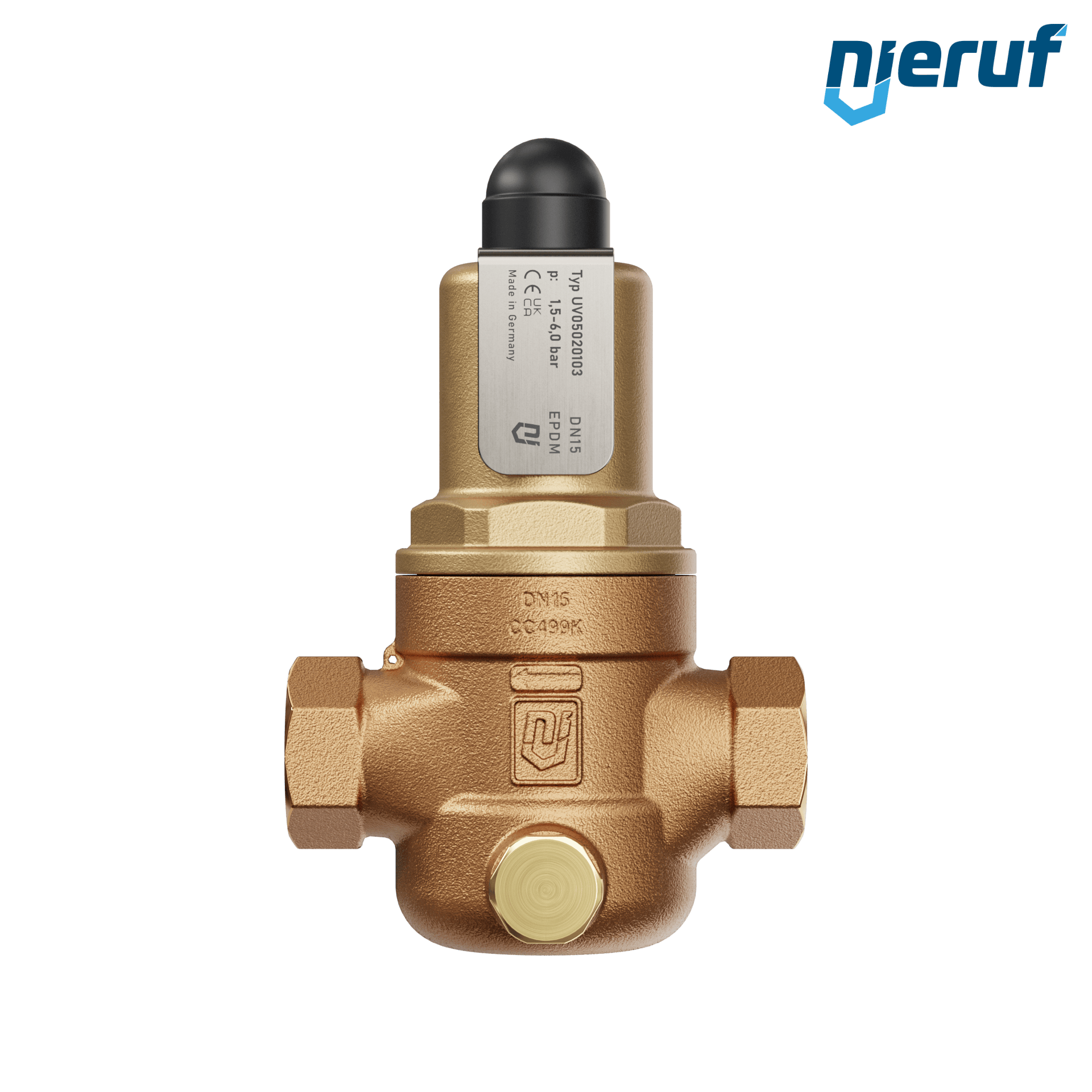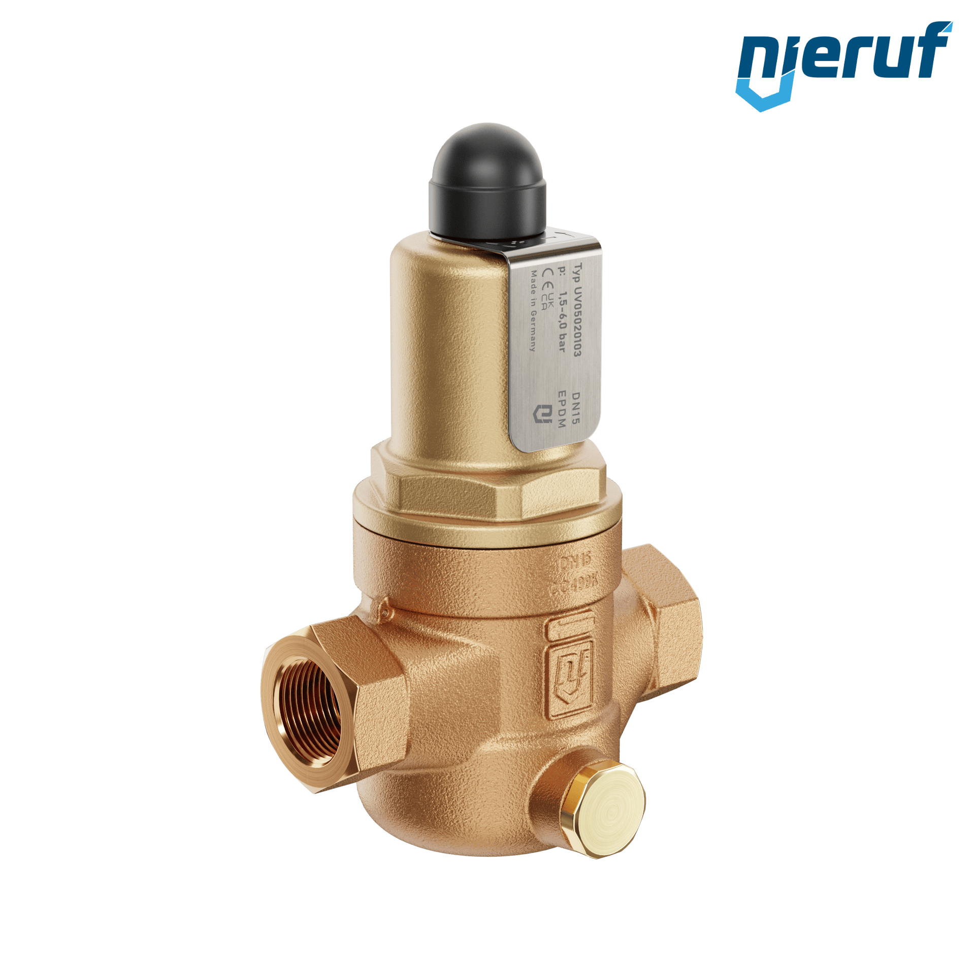 Durchgangs-Überströmventil 1/2" Zoll IG Typ UV05 aus Rotguss/Messing Einstellbereich 1,5 - 6,0 bar Dichtung EPDM für flüssige und gasförmige Medien