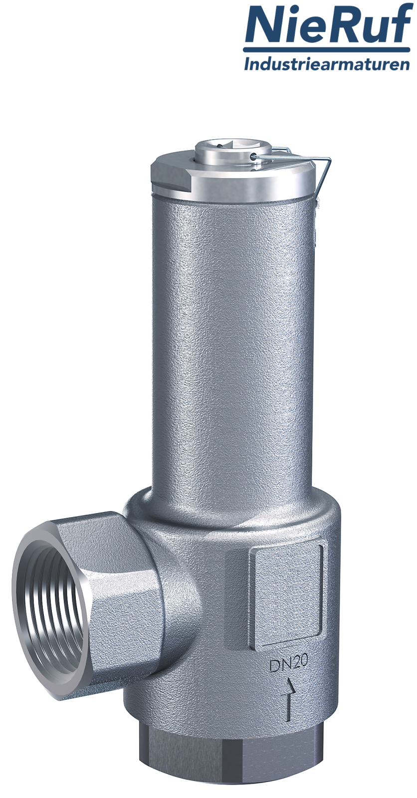 Eck-Überströmventil 2" Zoll IG Typ UV04 aus Edelstahl Einstellbereich 12,0 - 20,0 bar Dichtung PTFE für flüssige und gasförmige Medien