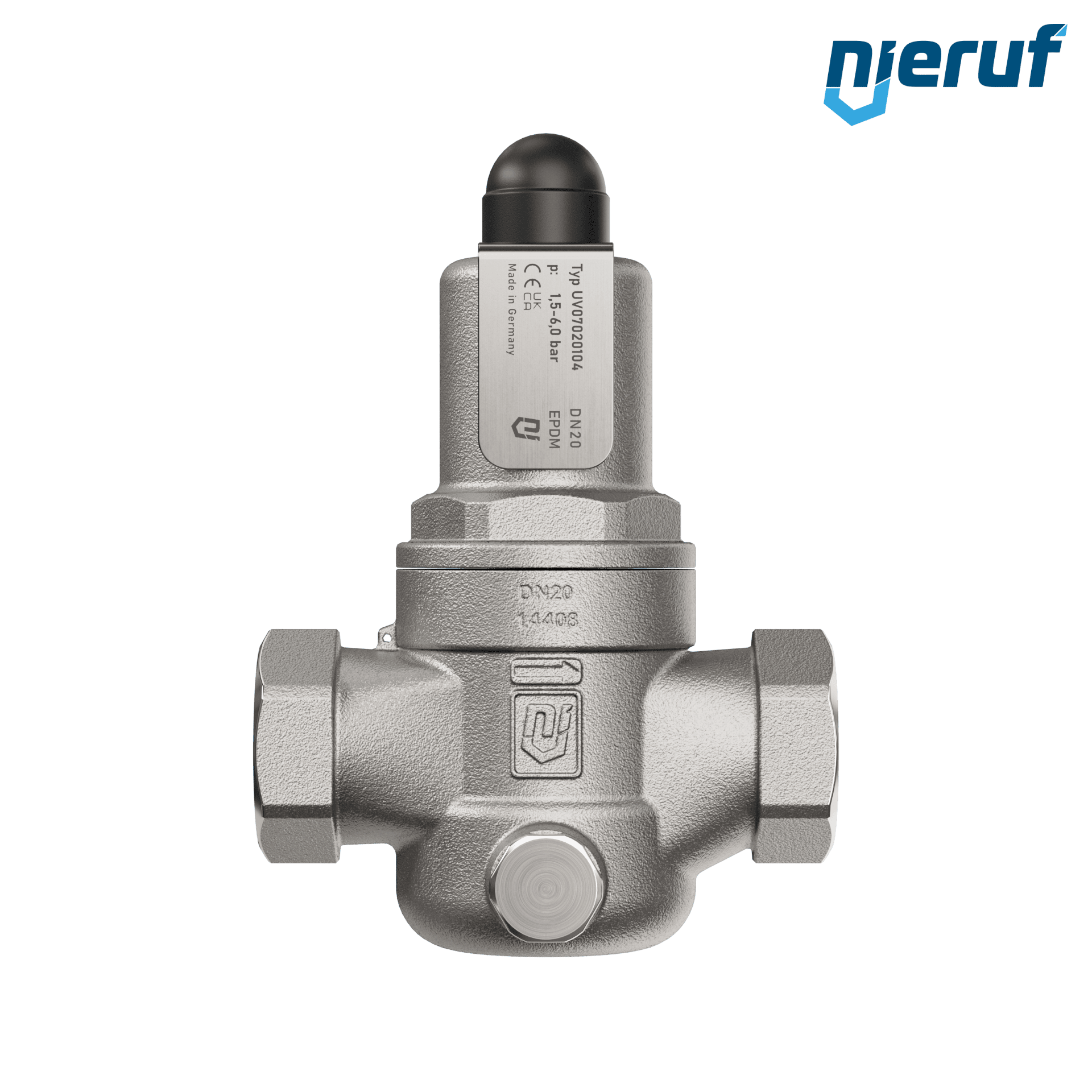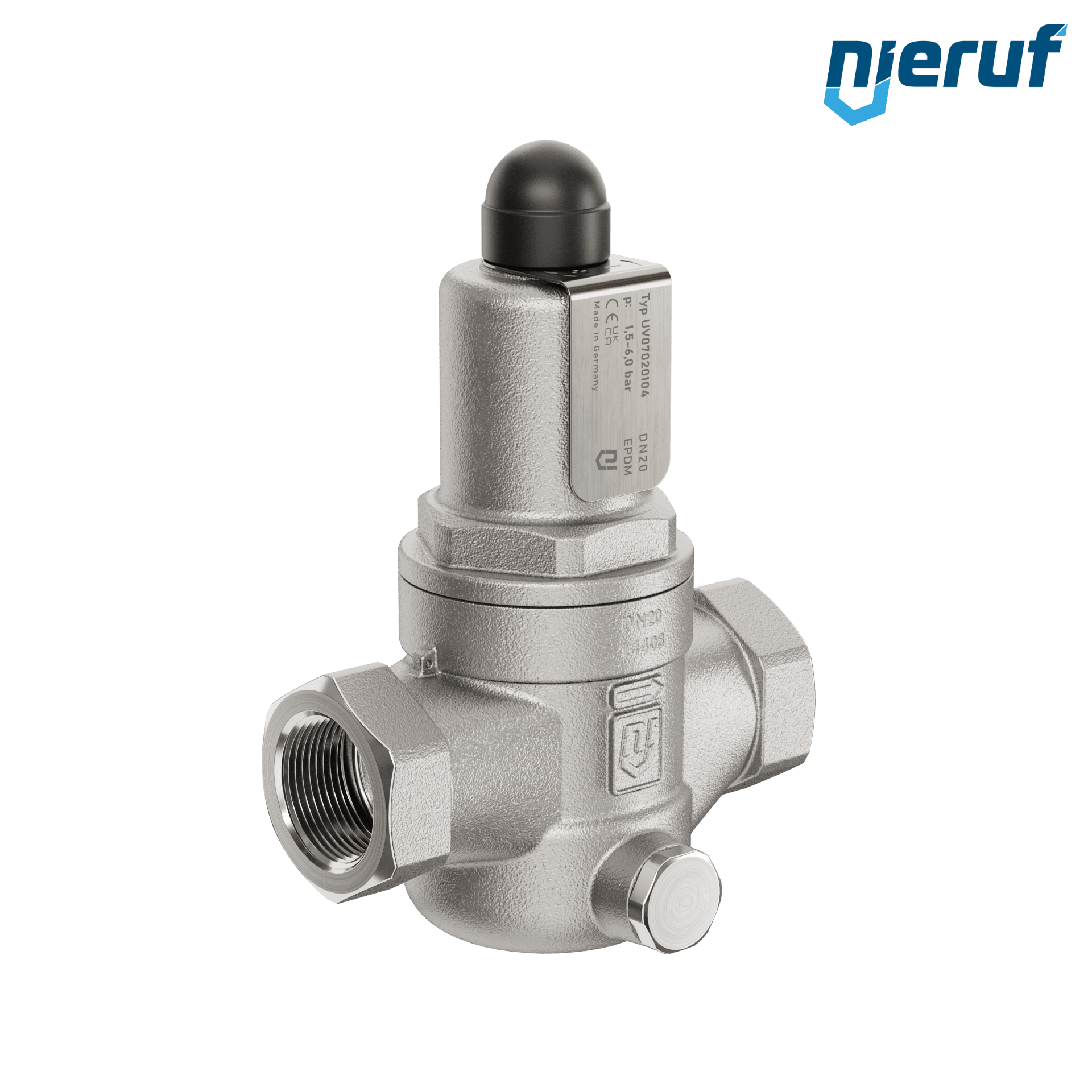 Durchgangs-Überströmventil 3/4" Zoll IG Typ UV07 aus Edelstahl Einstellbereich 1,5 - 6,0 bar Dichtung EPDM für flüssige und gasförmige Medien