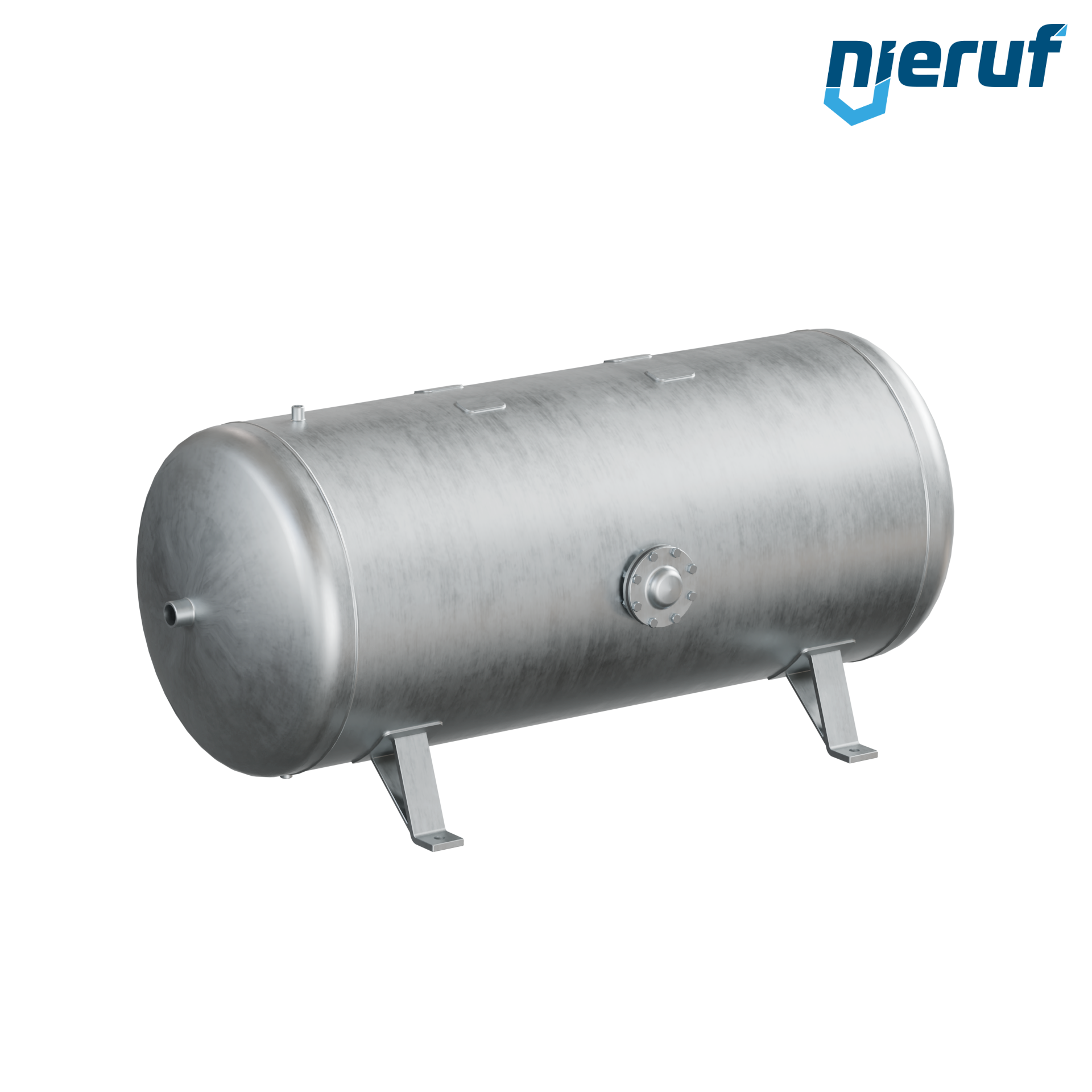 Vakuumbehälter BE03 mit 750 Liter Volumen liegend in Betriebsdruck -1-3 bar aus Stahl feuerverzinkt und Durchmesser 750 mm