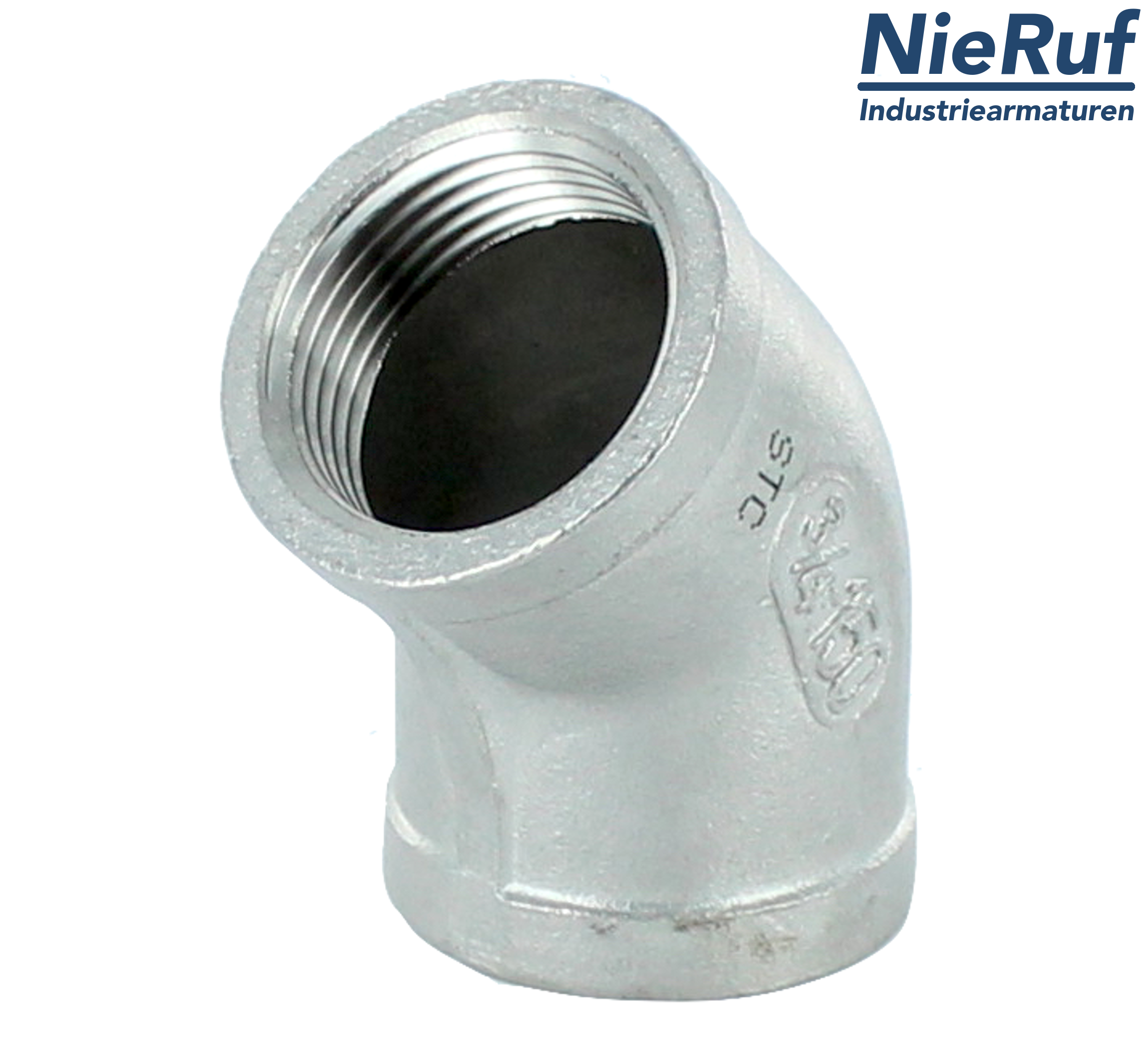Winkel GF01-0 mit Innengewinde 1/2" Zoll aus Edelstahl 316 im 45° Winkel für flüssige & gasförmige Medien