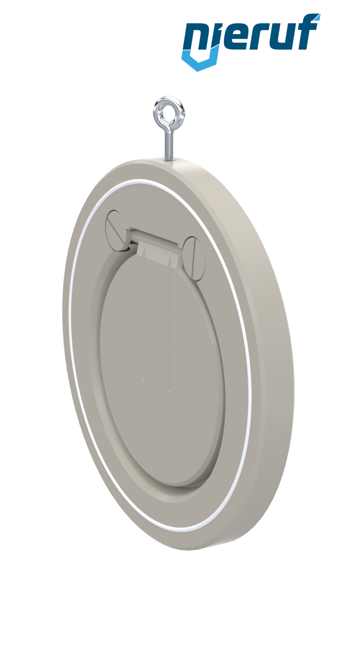 Zwischenflansch-Rückschlagklappe DN150 PN 10/16 DIN EN 1092-1 Form B aus Kunststoff PP-H Dichtung PTFE für flüssige und gasförmige Medien