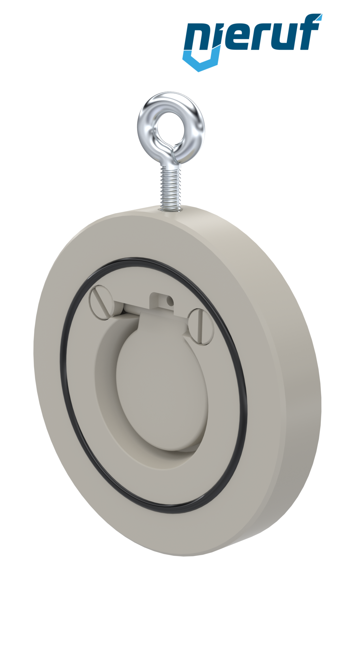 Zwischenflansch-Rückschlagklappe DN40 PN 10/16 DIN EN 1092-1 Form B aus Kunststoff PP-H Dichtung FKM (Viton) für flüssige und gasförmige Medien