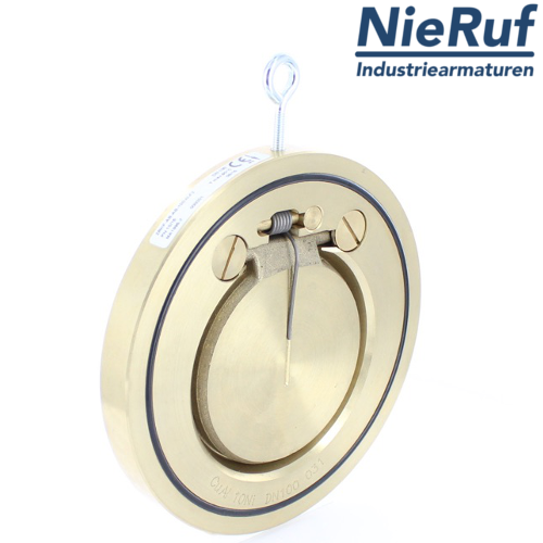 Zwischenflansch-Rückschlagklappe mit Feder DN40 PN 10/16/25/40 DIN EN 1092-1 Form B aus Alubronze 2.0975 Dichtung NBR