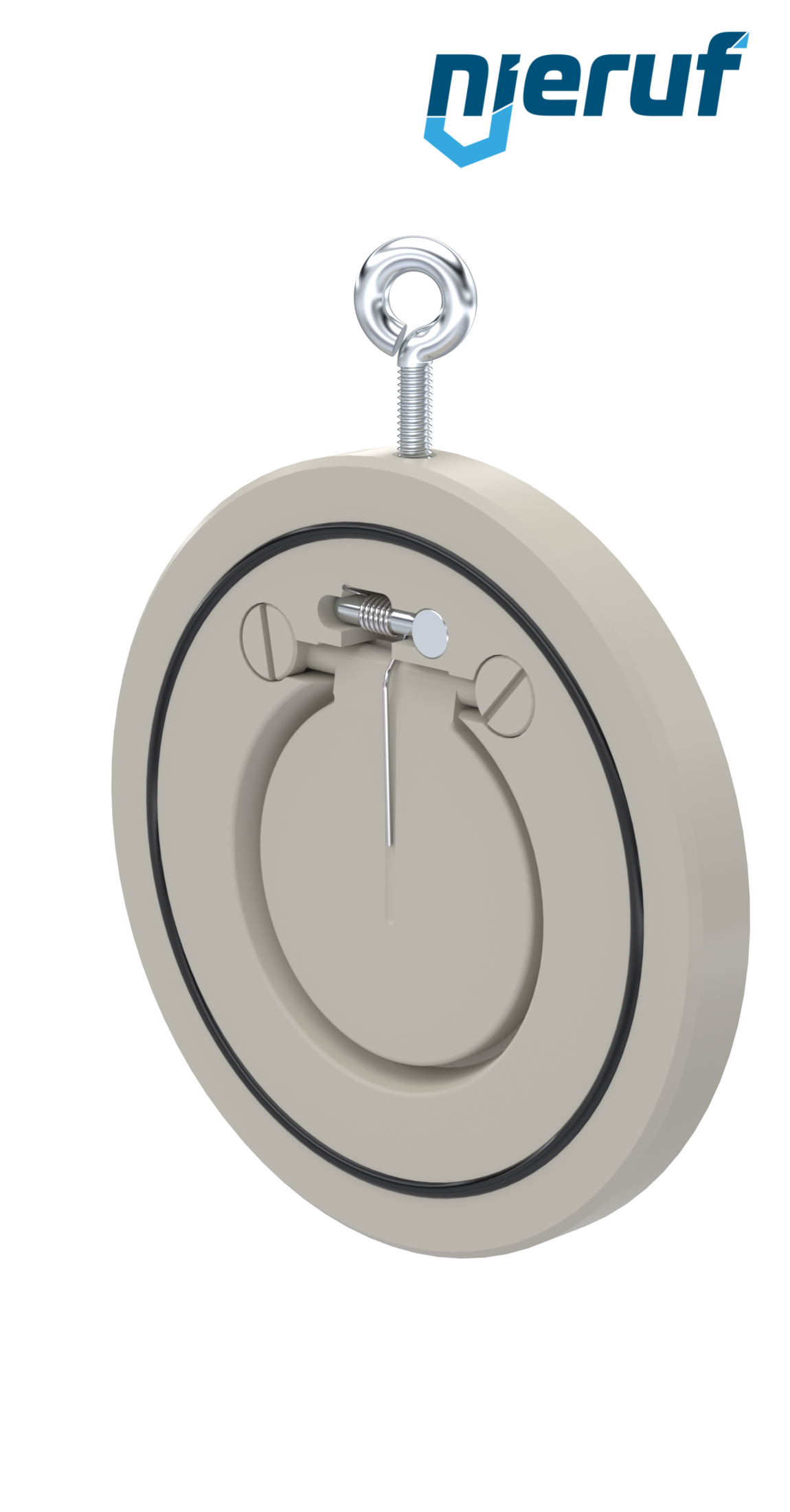 Zwischenflansch-Rückschlagklappe mit Feder DN65 PN 10/16 DIN EN 1092-1 Form B aus Kunststoff PP-H Dichtung FKM (Viton)