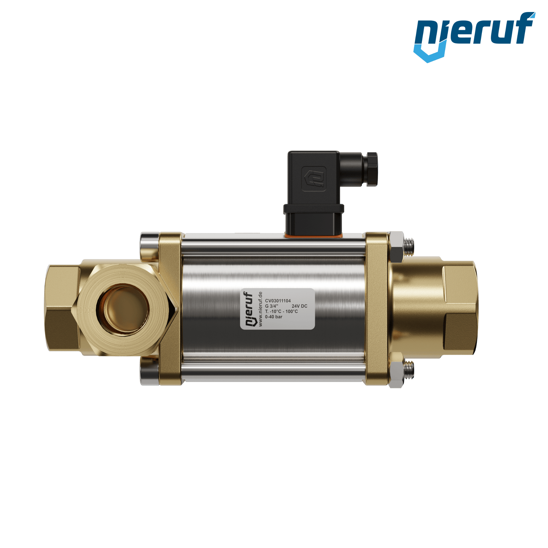 3/2 Wege-ventil Coaxial-Ventil 3/4" Zoll IG - DN20 aus Messing, direktgesteuert bis max. 40 bar, NO - stromlos offen Spannung 24V DC - für Wasser