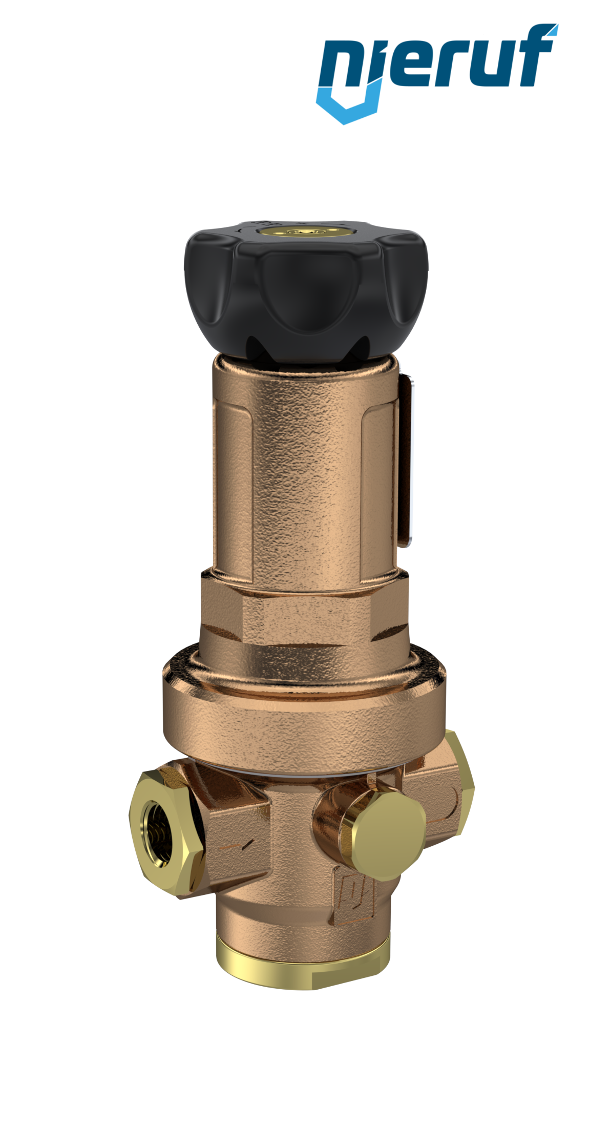 | Produktmerkmal | Hochwertiger Präzisions-Druckminderer mit Steuerkolben und Stützring. Druckverstellung über nicht steigende Spindel und integriertem Manometeranschluss 1/4" |